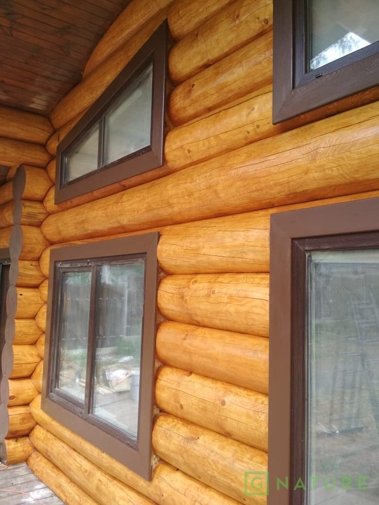 Наилучшим образом подходит для окраски оцилиндрованного бревна